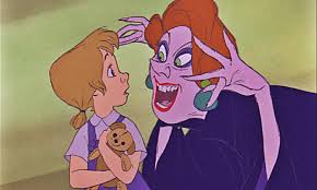 I absolutely hated this women when I was a kid. She makes the list because she kidnaps  a little girl in order to get some giant diamond stuck in a well. And she throws a fit every time little Penny runs away, leaving her henchman, Mr. Snoops and her pet alligators to go after her. She treats everyone she meets like dirt, especially Penny and Snoops. She even goes as far as stealing Penny’s teddy bear, yet she’s afraid of mice. I’m always laughing the first time she sees Bernard and Bianca. It’s priceless.